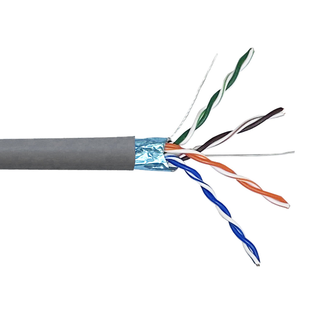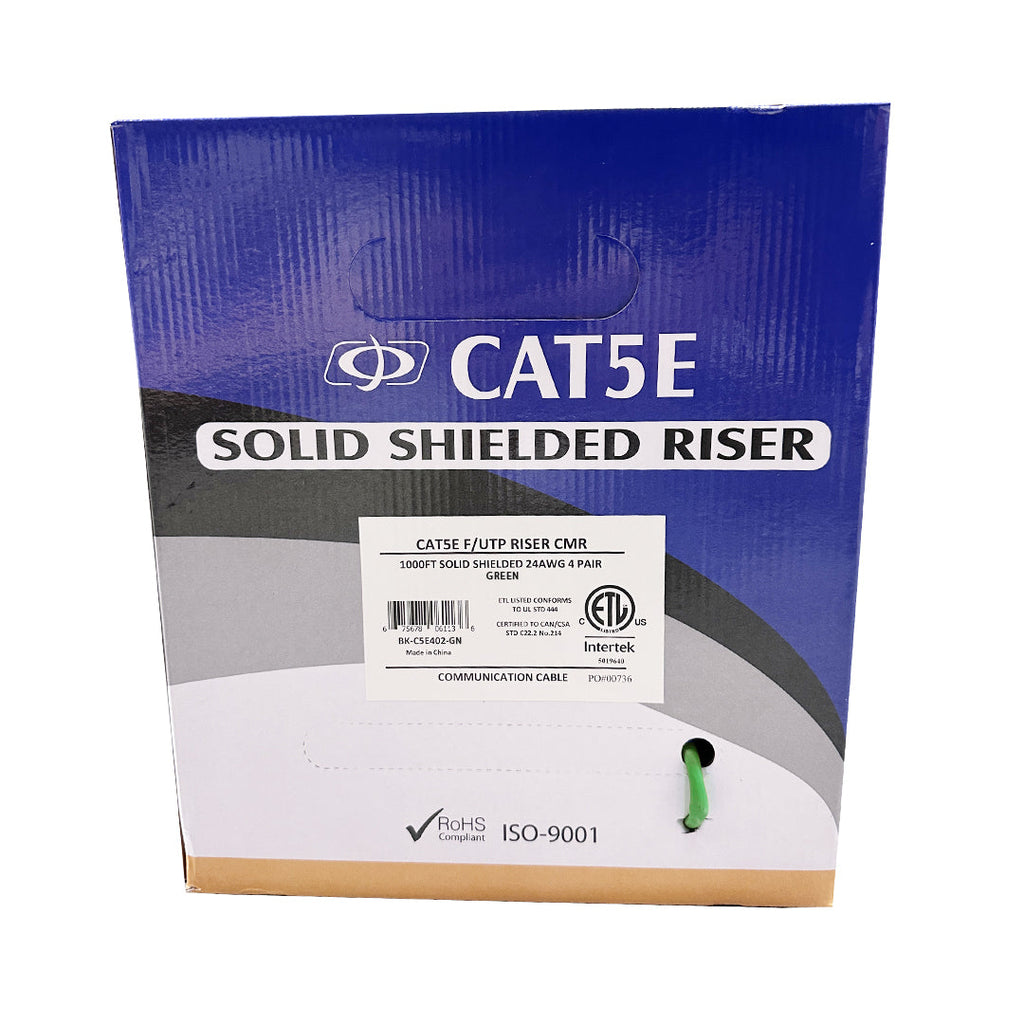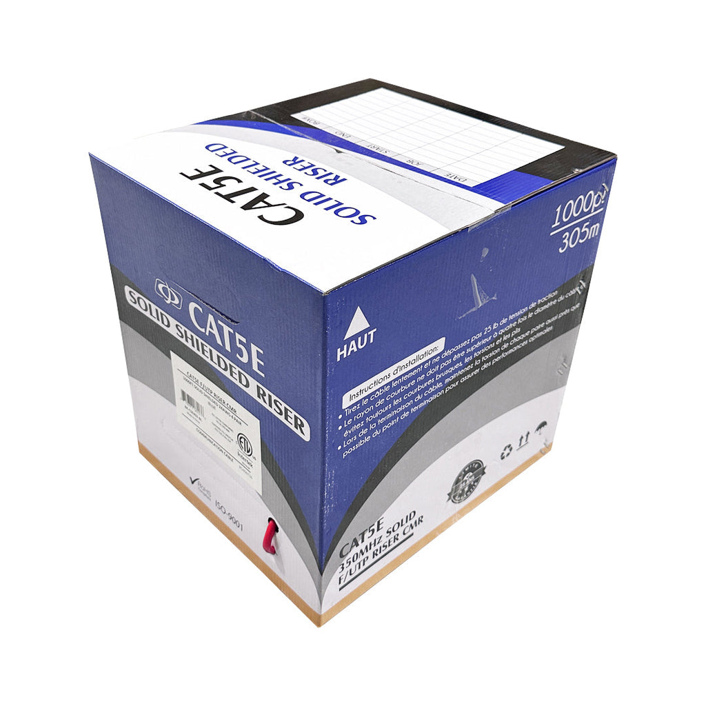 This bulk riser rated Cat5e cable is 1000 feet in length and consists of 4 pairs of 24AWG solid wires with an overall foil shield. It is typically used as in-wall premise wiring and terminated from a patch panel to a Cat5e jack. It is great for all high bandwidth applications such as high speed networks.