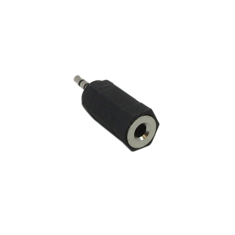 This adapter consists of a 3.5mm stereo female on one end and a 2.5mm stereo male on the other. It is typically used to convert a 3.5mm stereo male cable to a 2.5mm stereo male cable.