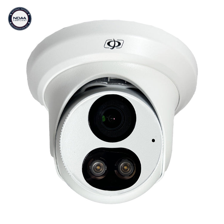This 5MP color night vision, indoor/outdoor, IP based turret camera features maximum light gathering capability to provide full color imaging in extremely dark settings. The camera is available in a 2.8mm or 4mm fixed lens which delivers a 109° or 94° horizontal field of view respectively. Its maximum resolution is 2688 x 1620 at 30 fps and supports H.265+ video compression technology, which assures savings in bandwidth and storage. The camera is IP based with integrated PoE technology which makes for a quick and easy installation over a single CAT5e/CAT6 cable. Its housing is IP66 rated for outdoor use.