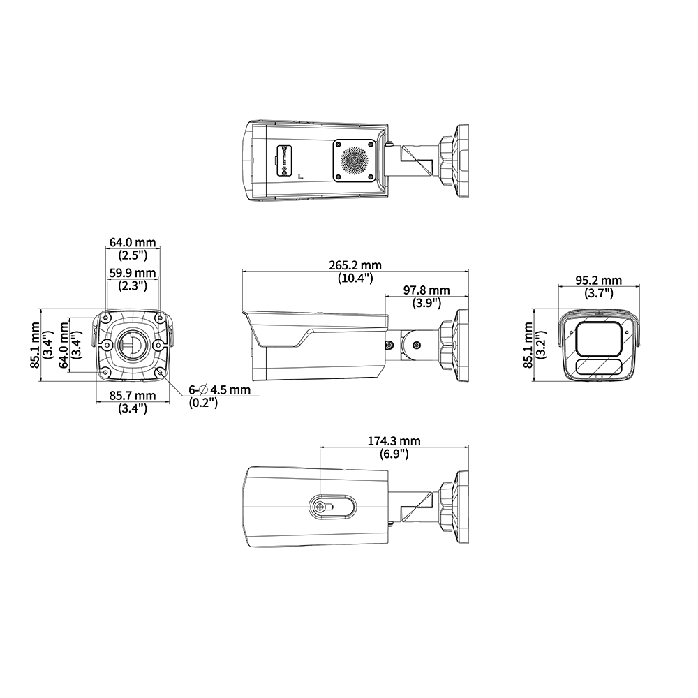265.2 mm × 95.2 mm × 82.9 mm (10.4" × 3.7" × 3.3" ) (L × W × H) |