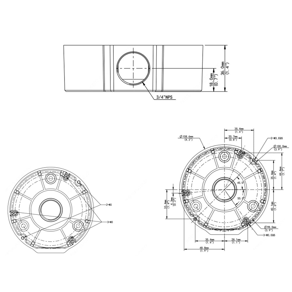 This junction box mounting bracket is designed to mount an IP dome camera. It has side and bottom inlets for easier installation. It is constructed of treated aluminum alloy material for better protection against the elements in outdoor applications.