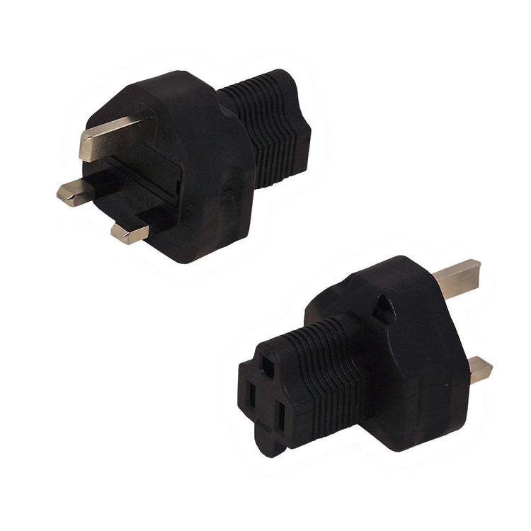 This adapter consists of BS1363 (UK) plug on one end and a 5-15R receptacle on the other. It is primarily used to adapt or convert an existing power cable.