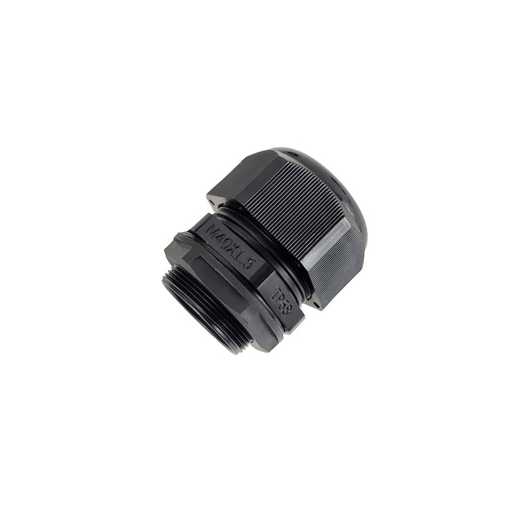 This cable gland has a metric thread pattern of M40xP1.5 and accommodates a cable size of 22 to 32mm. The gland is dust resistant and waterproof with an IP68 rating and also has a flammability rating of UL94V-2. Cable glands are often referred to as cord grips or strain reliefs and are designed to attach and secure the end of a cable to a receptacle box or equipment.