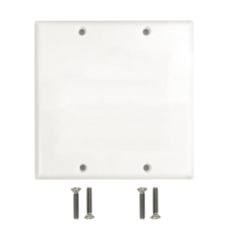 This double gang solid cover plate fits standard size double gang North American wall plate openings.