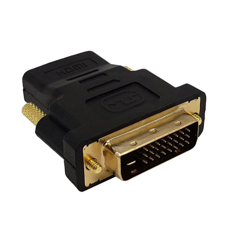 This adapter consists of a DVI-D male on one end and a HDMI female on the other. It is typically used to convert a HDMI male cable to a DVI-D male cable.