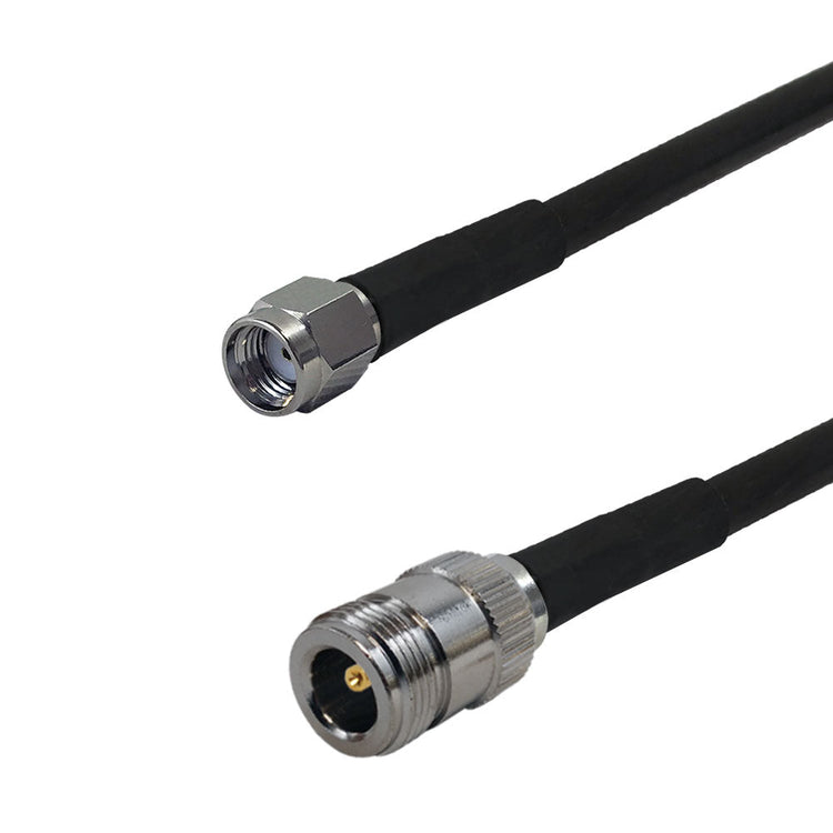 This Times Microwave LMR-240 Ultra Flex antenna cable has a N-Type female on one end and a SMA reverse polarity male on the other. It is typically used to connect RFID/GPS wireless infrastructures, such as wi-fi antennas, routers, access points and compatible for use in Helium network repeater/mining applications.