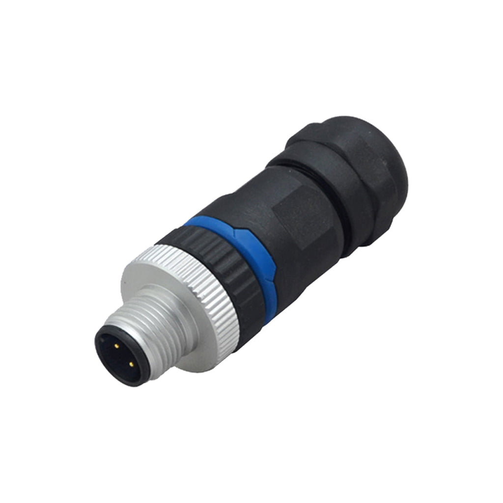 This M12 A-coded 4-pin male straight connector features a plastic housing and screw clamp for 6–8mm cables. With 250V/4A power rating, it’s ideal for industrial automation, sensors, robotics, and more.