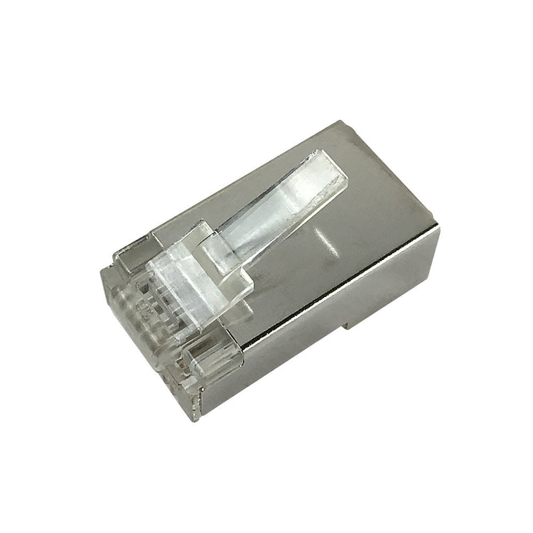 This modular RJ45 Cat6 shielded connector is an 8 position, 8 conductor plug. The plug is typically used to terminate shielded CAT6 round cable.