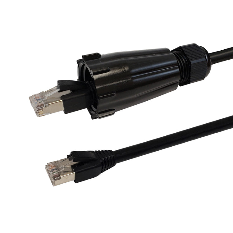 | 100% Pure CopperThis cables is manufactured using high quality pure bare copper to ensure optimal performance and longest lifetime. 50 Micron Gold Plated ConnectorsThis non-corrosive, thickest available gold plating delivers optimum conductivity and maintains a stable signal connection with little risk of getting damaged over time. Outdoor Cable, IP68 Rated HousingIdeal for use in cable runs that are located above or below ground as premise wiring to connect network devices. The shrouds are IP68 rated and can be secured to mating IP68 rated RJ45 couplers - not allowing water penetration.