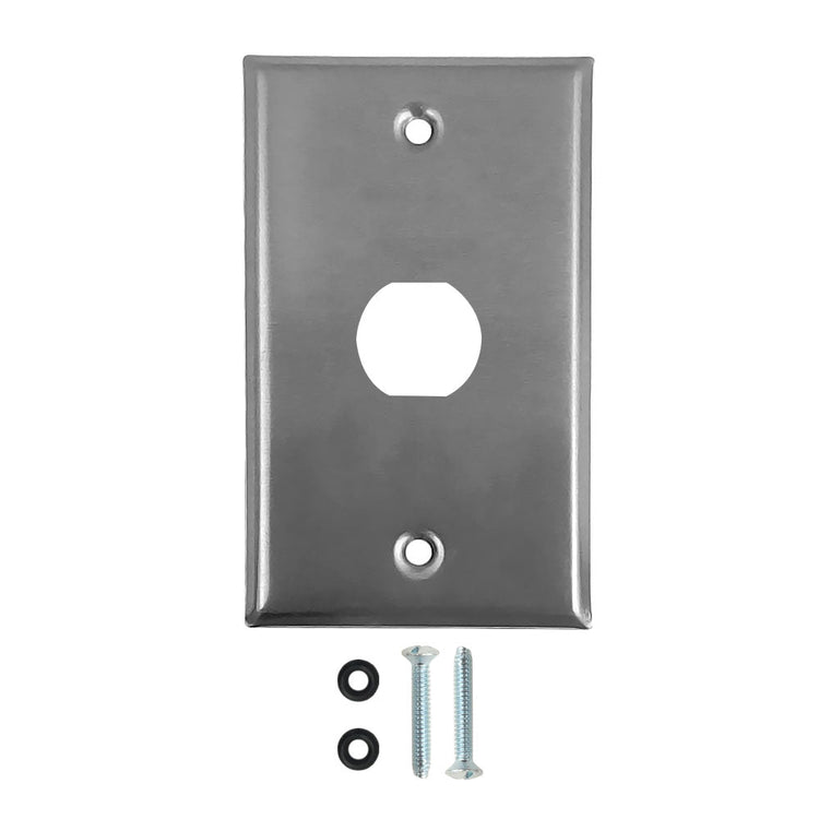 wall plate is IP44 rated and resists water and large debris. Comes with