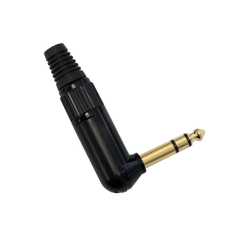 This connector is a 1/4 inch stereo right angle male with a solder connection. It is used to be soldered onto audio/video cable.