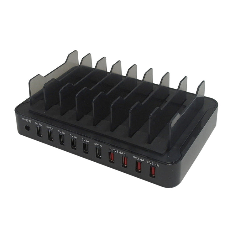 This USB power station consists of ten USB A female charging ports. It is used to charge smart phones and tablets (such as iPhone, iPad, Samsung, LG, HTC and Android devices) and delivers a total of 13.2 amps of power. Four of the outputs incorporate Smart IQ technology for fast charging.