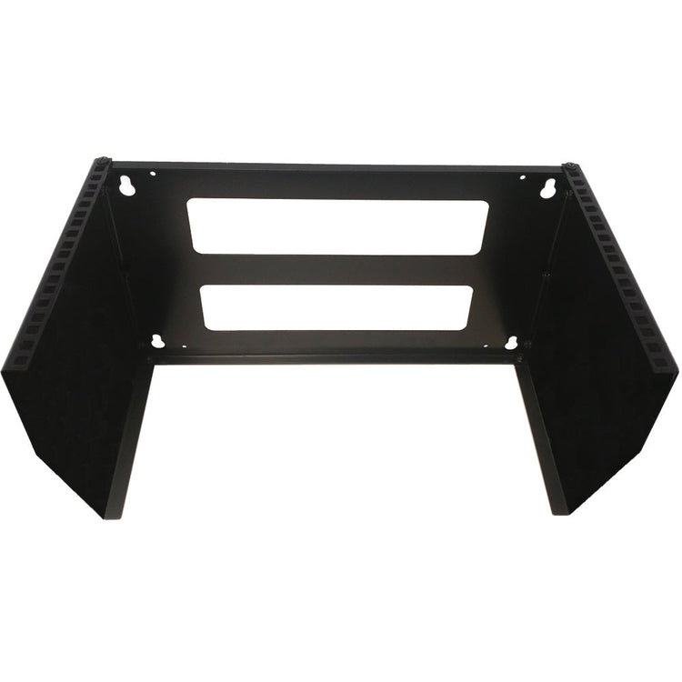 This vertical wall mount rack is 6U in depth. It is used for mounting 19" wide networking equipment vertically. Works well in a small office or home where space is limited.