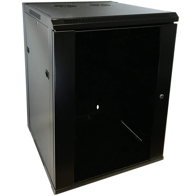 This 15U wall mount cabinet comes with a lockable front door and removable side panels. It is typically used for housing network and DVR equipment used in small offices and homes. (Fans sold separately. Click here for fan kit).